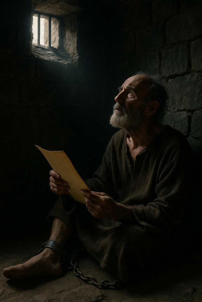 Condițiile sunt mult mai dure: frig, umezeală, întuneric, lanțuri grele. De aici scrie 2 Timotei – o scrisoare care poartă amprenta zidurilor și a așteptării morții, dar și strălucirea unei nădejdi neclintite.